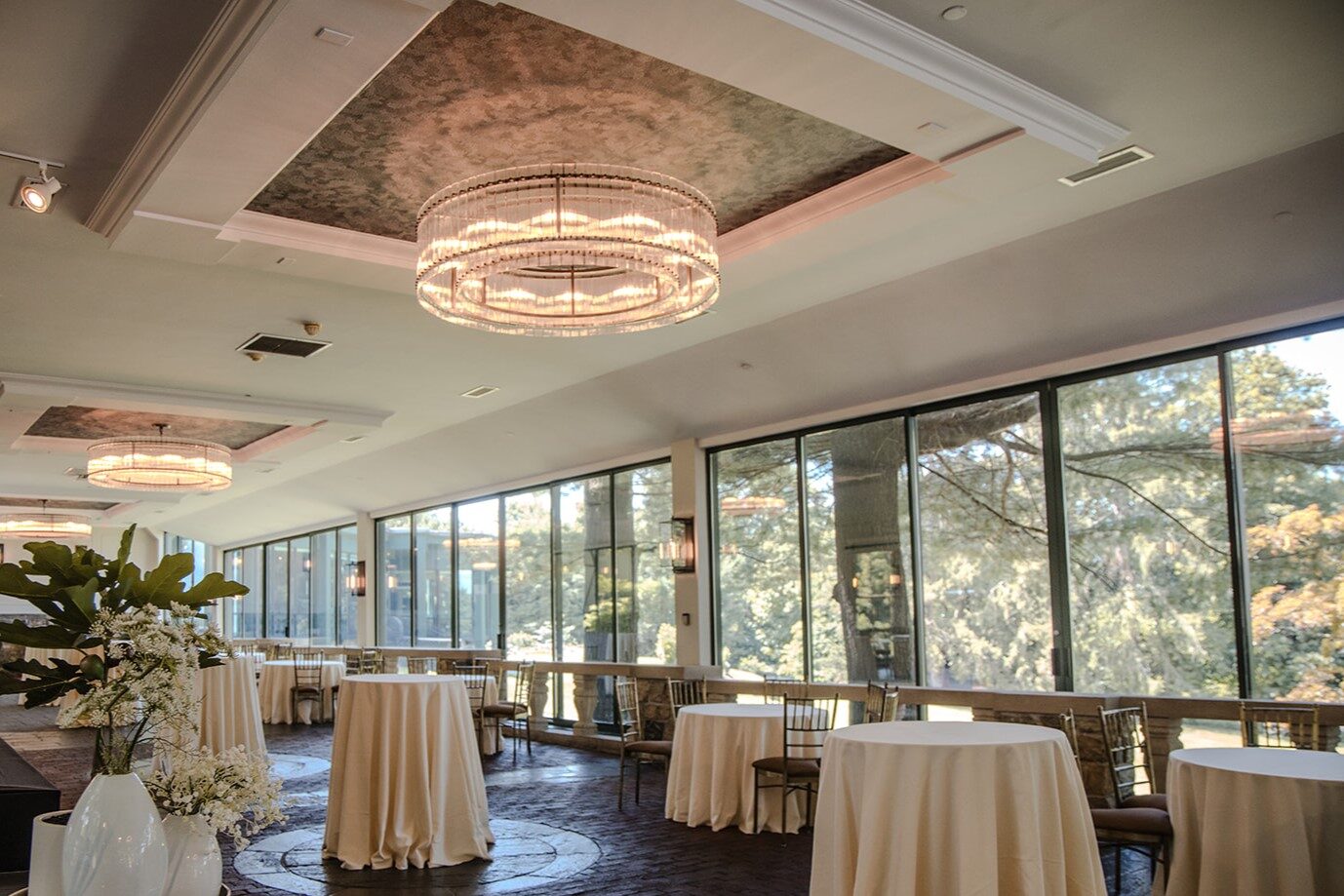 The Pavilion Room at Tappan Hill Mansion offers breathtaking views of the Hudson River and the distant Palisades. With its exposed stone, draped ceilings, and oversized windows, the reception room enchants at all hours. The space flows into a glass-enclosed promenade that leads outside to an exquisite terrace—an idyllic spot for your ceremony. Accommodating up to 250 guests, the Pavilion Room is a sublime setting for celebrations that are as elegant and timeless as they are personal.